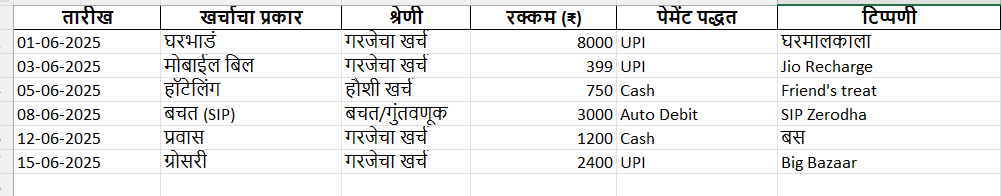 💼 ₹२५,००० पगाराचे मासिक बजेट – प्रत्यक्ष उदाहरण